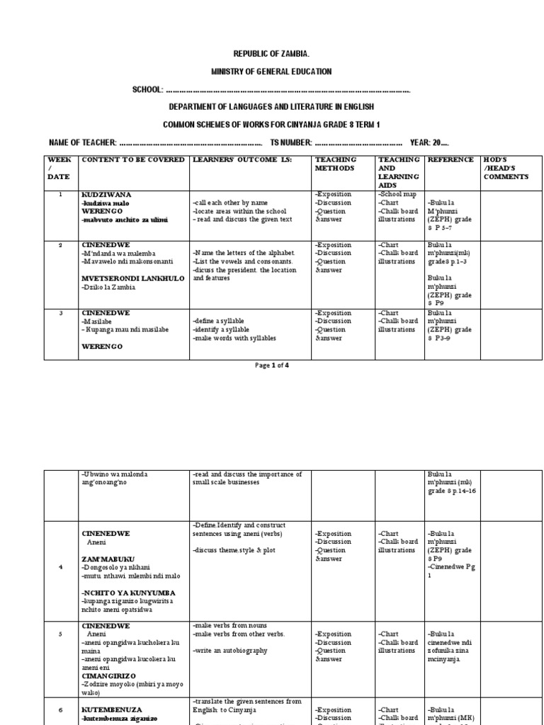 Grade 8 English Syllabus Zambia Pdf